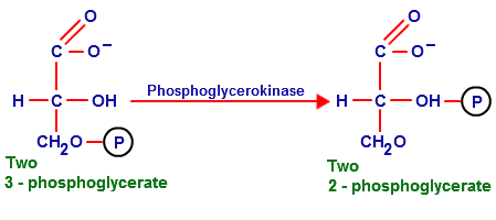 Step 8: 3-phosphoglycerate is converted to 2-phosphoglycerate by phosphoglyceromutase, which exchanges the current phosphate for a phosphate on the enzyme.