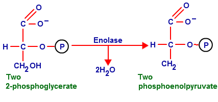 Step 9: 2-phosphoglycerate is converted to phosphoenolpyruvate (PEP) by enolase.