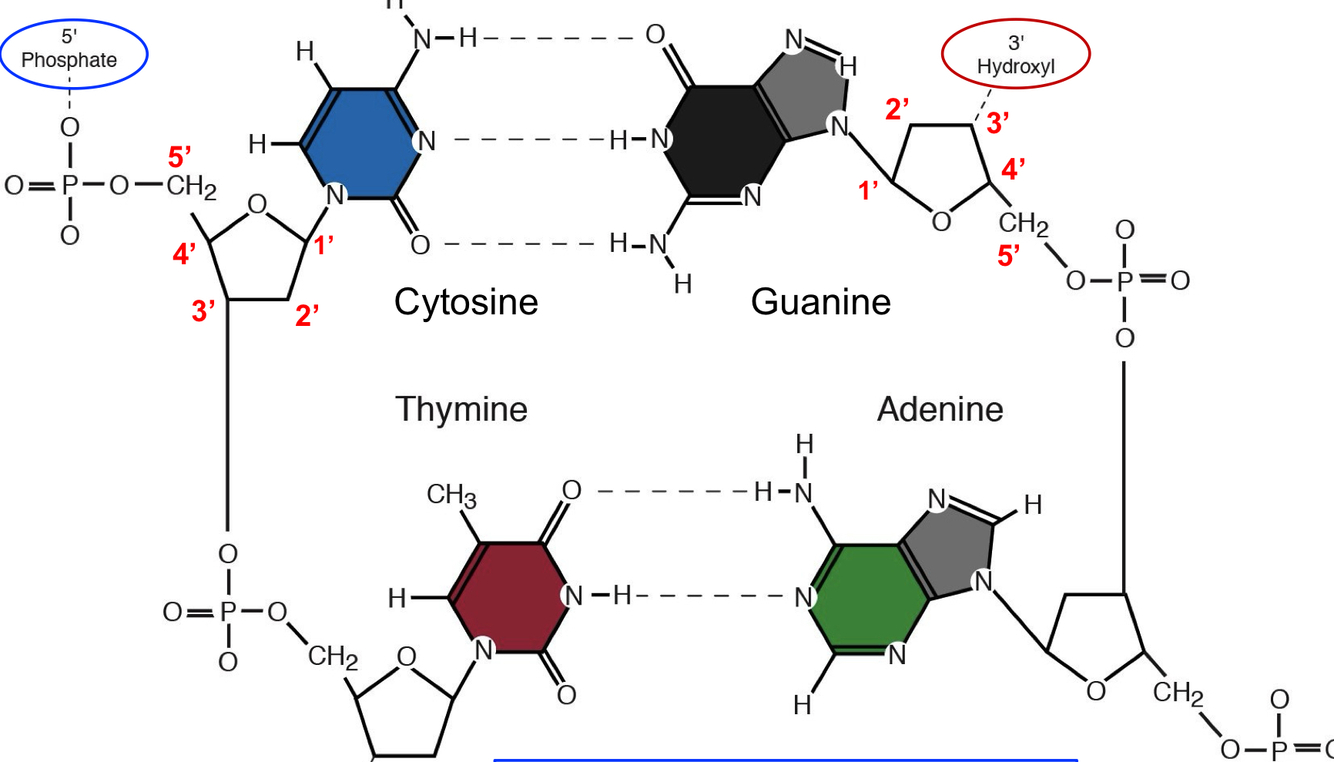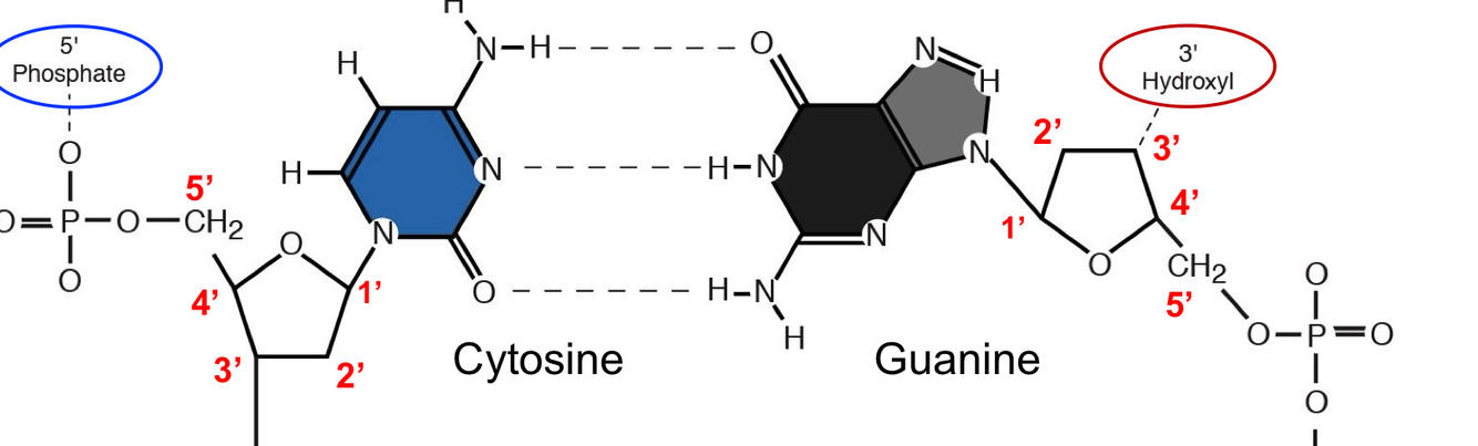 how would you recognize the 5’ vs 3’ end of a DNA strand