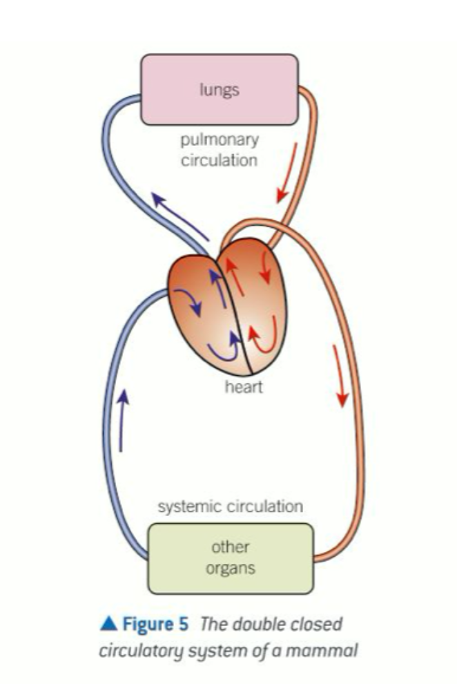Each circuit - to the lungs and to the body - only passes through one capillary network, which means a relatively high pressure and fast flow of blood can be maintained.