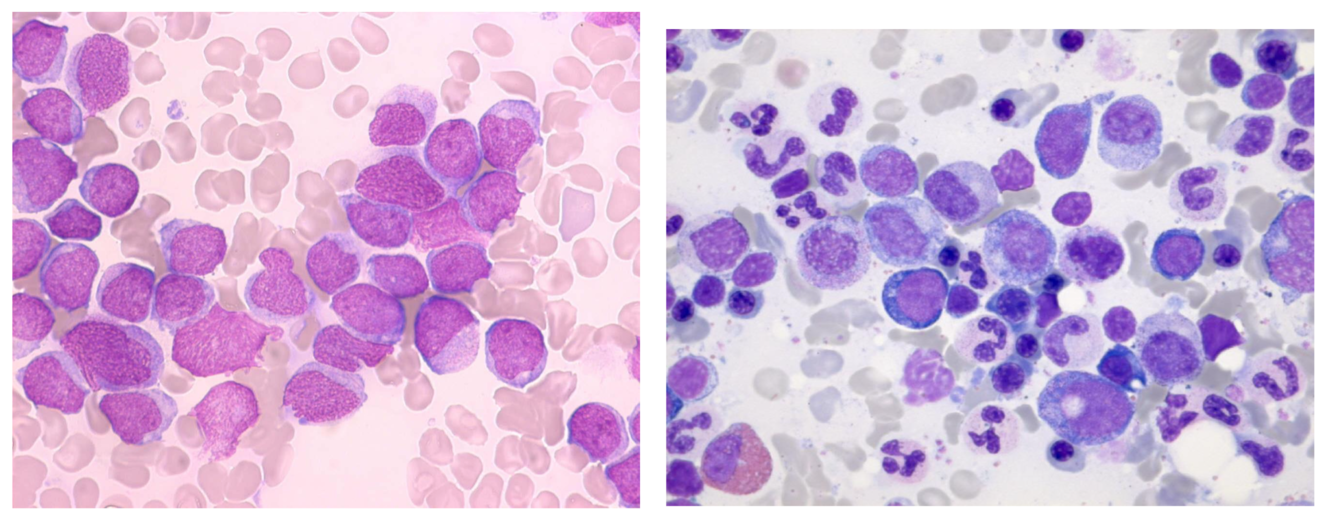 The left figure is a blast cell, the right figure is a normal bone marrow