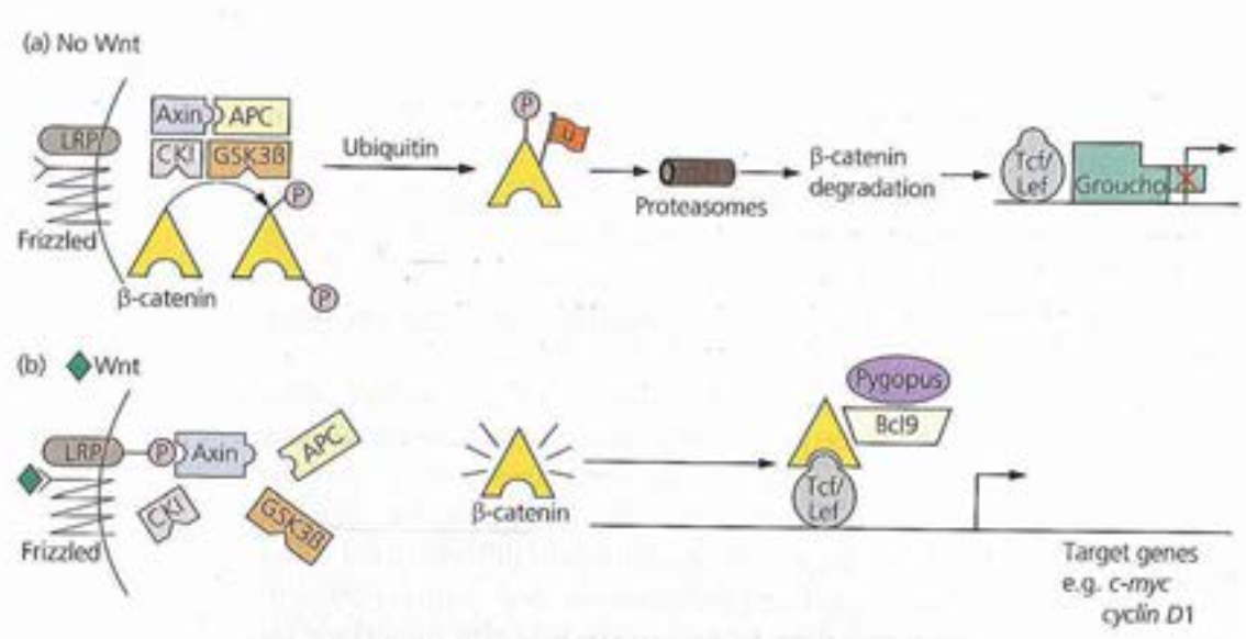 Mutations in the Wnt signaling cascade can also promote other types of cancers. What type of cancers do each of these mutations lead to?