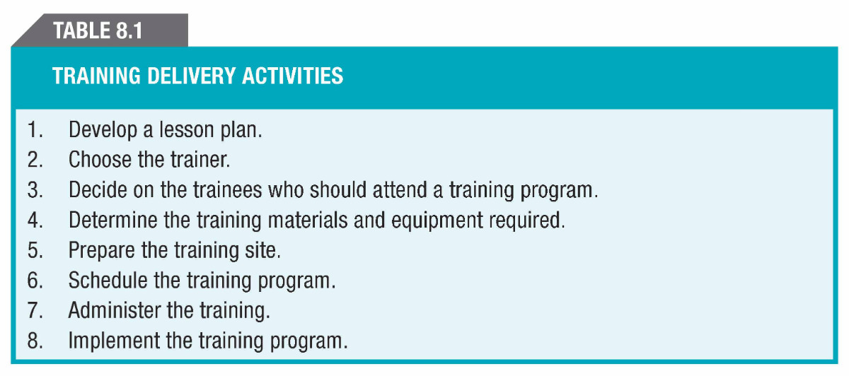 8.1: Training Delivery Activities