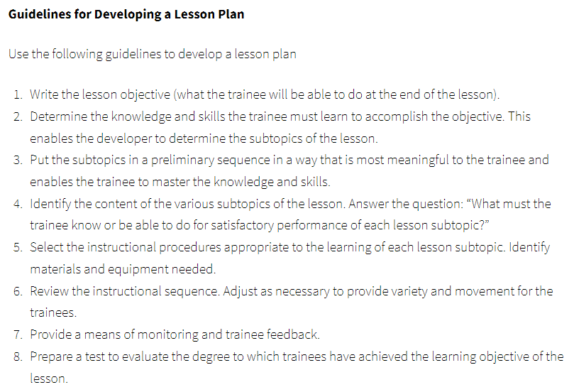 Guidelines for Developing a Lesson Plan (8 steps)