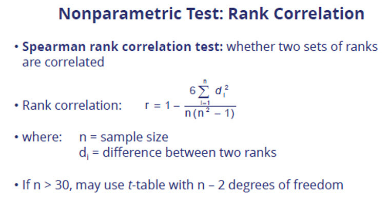 Non Parametric - Spearman Rank Correlation.