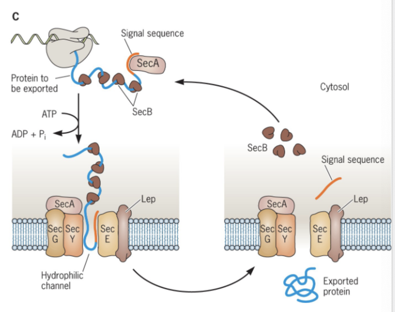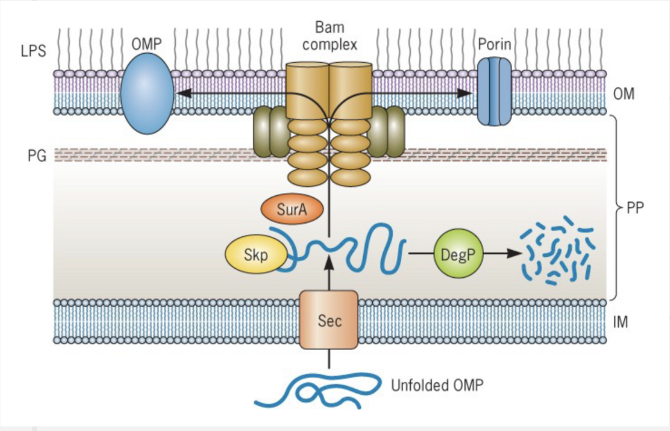 Diagram of gram negative outer membrane, and regulation of sec proteins: