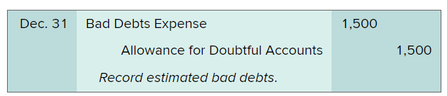 1. records estimated bad debts expense in the period when the related sales are recorded