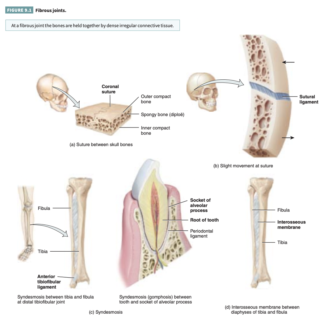 There is no synovial cavity, and the bones are held together by dense irregular connective tissue that is rich in collagen fibers.