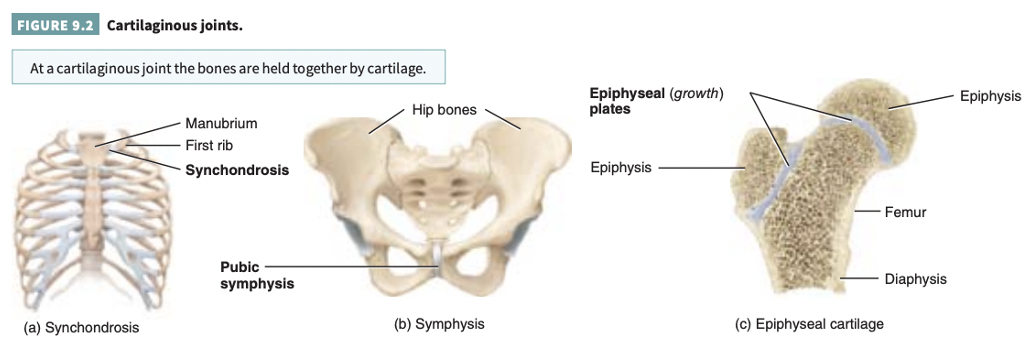 What are the three types of cartilaginous joints?