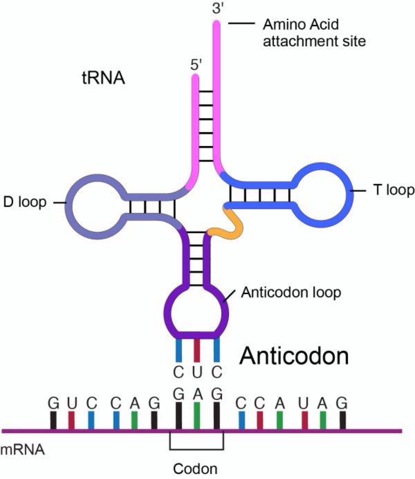 A site: where tRNA enter the ribosome. If the anticodon of this tRNA matches the codon of the mRNA, the tRNA and mRNA bind together
