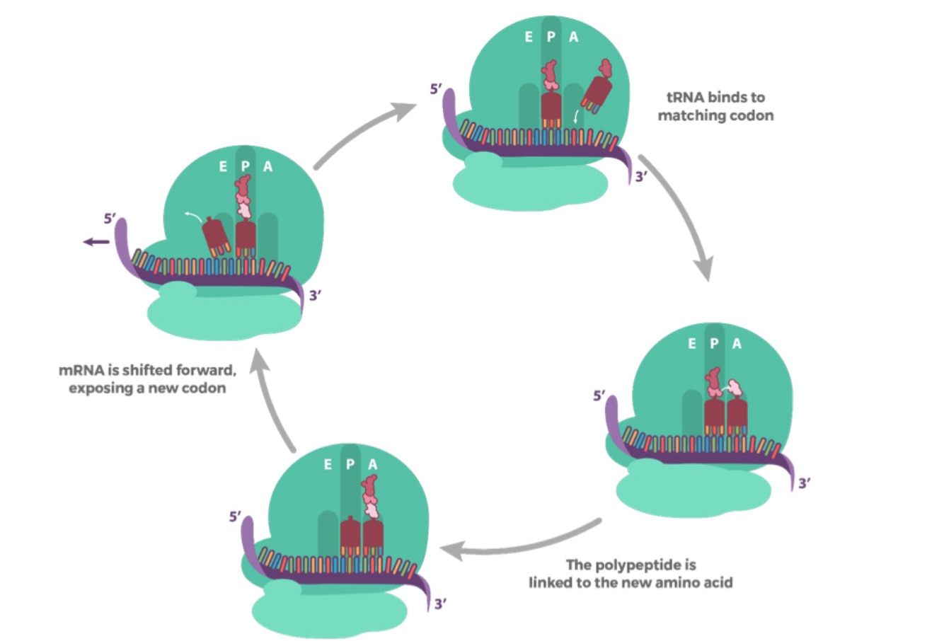 E site: This where the now “naked” tRNA sits and exits the ribosome after it adds its amino acid to the chain