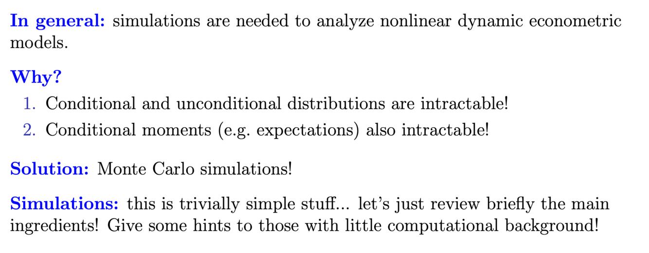When are Monte Carlo simulations sometimes necessary, to analyze nonlinear econometric models?