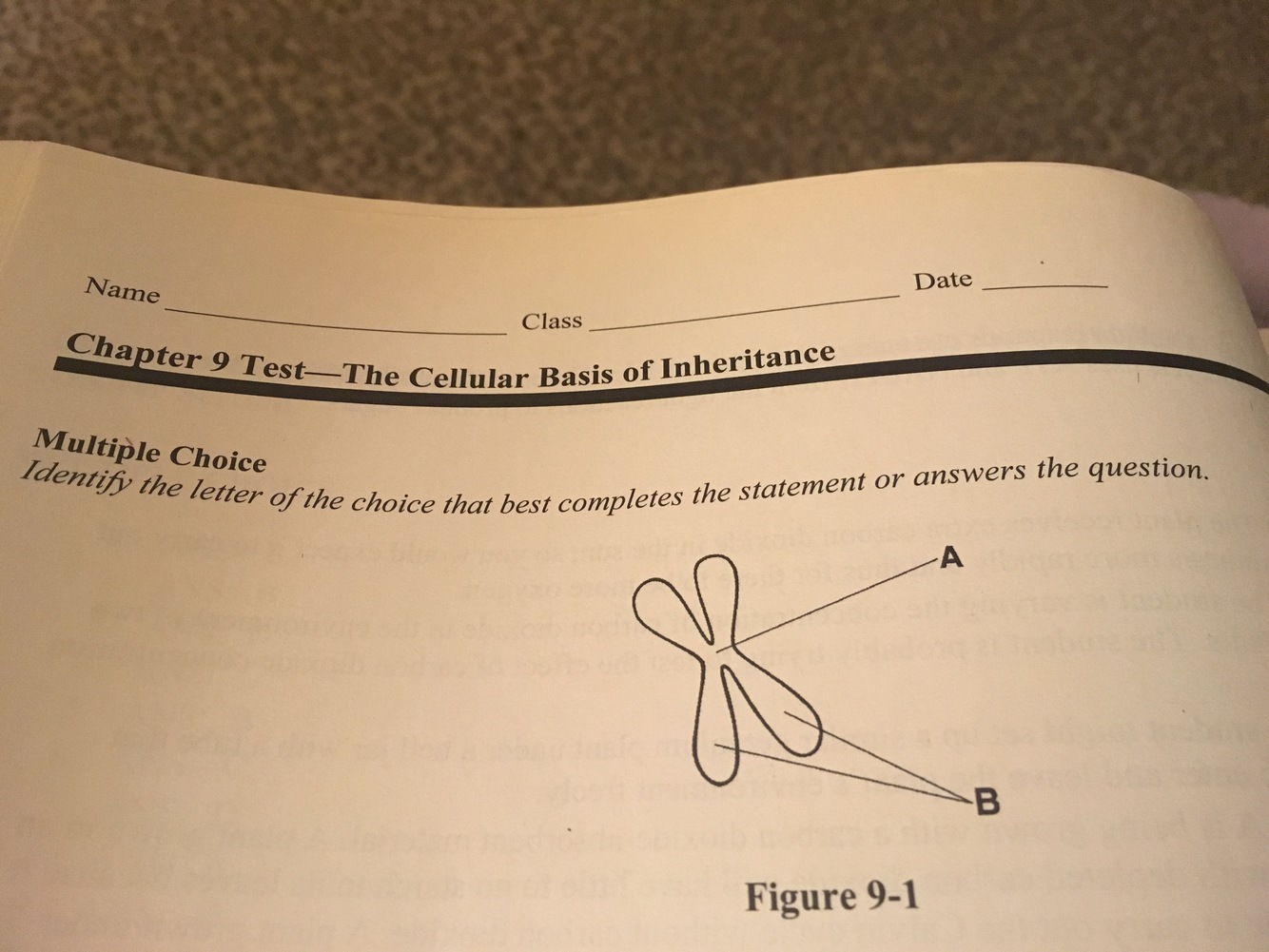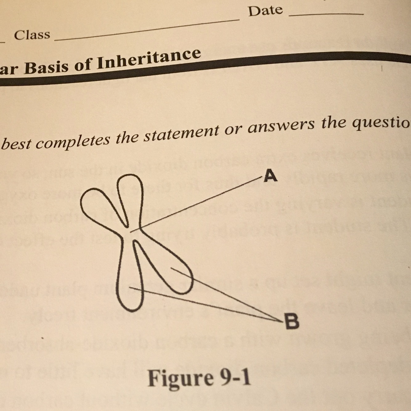 The region labeled “A” in figure 9-1 is called the a. centromere