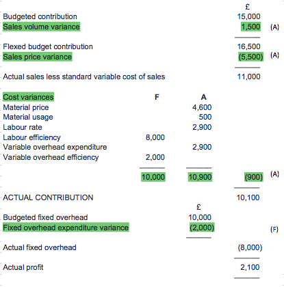 The reporting of the difference between actual results and the flexed budget (not original budget)