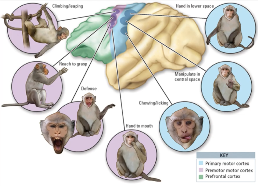 more elementary movements than premotor lexicon, including hand and mouth movements