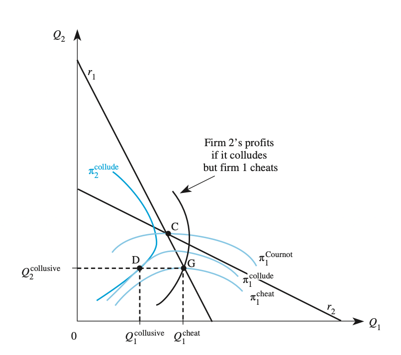 Given that firm 2 produces Q2collusive, firm 1 has an incentive to “cheat” on the collusive agreement by expanding output to point G.