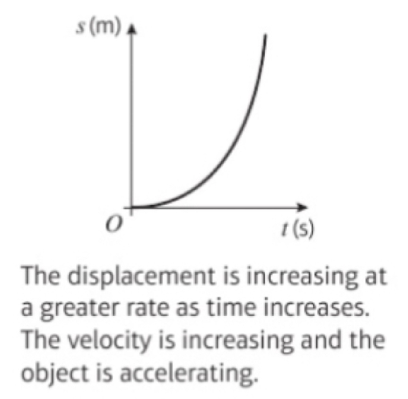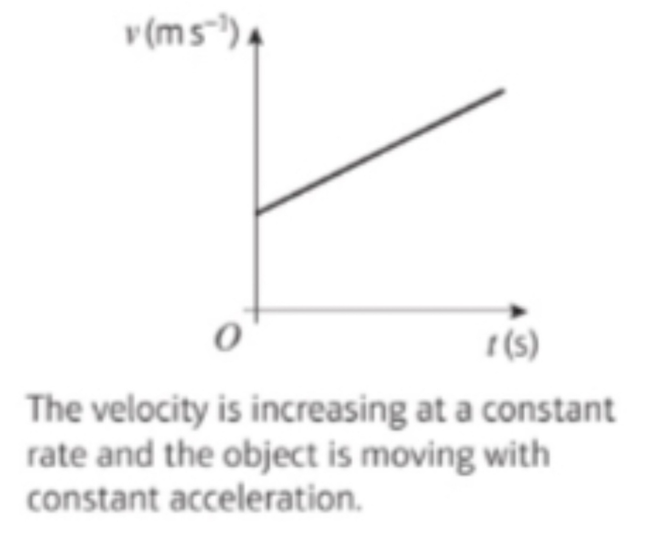 An object moving with increasing velocity and constant acceleration on a velocity-time graph: