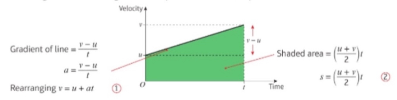 For motion in a straight line with positive velocity, the area under the velocity-time graph up to a point t represents the displacement at time t