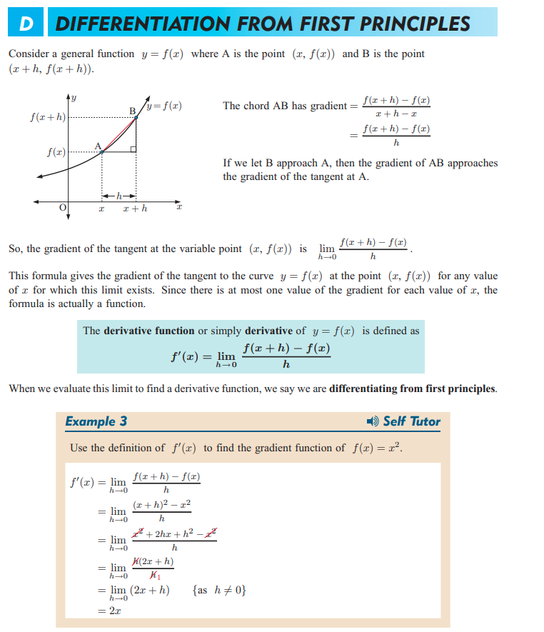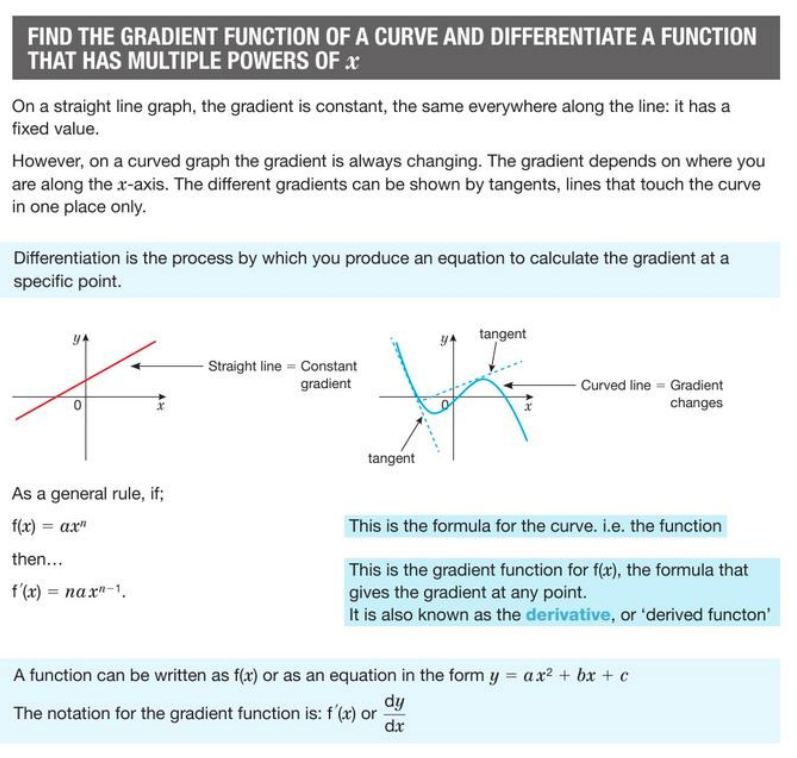 Differentiate a function, find gradient function of a curve