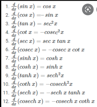 Derivatives of trigonometric identities, hyperbolic identities, inverse identities
