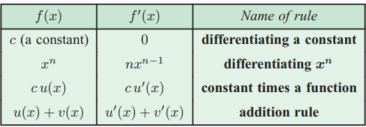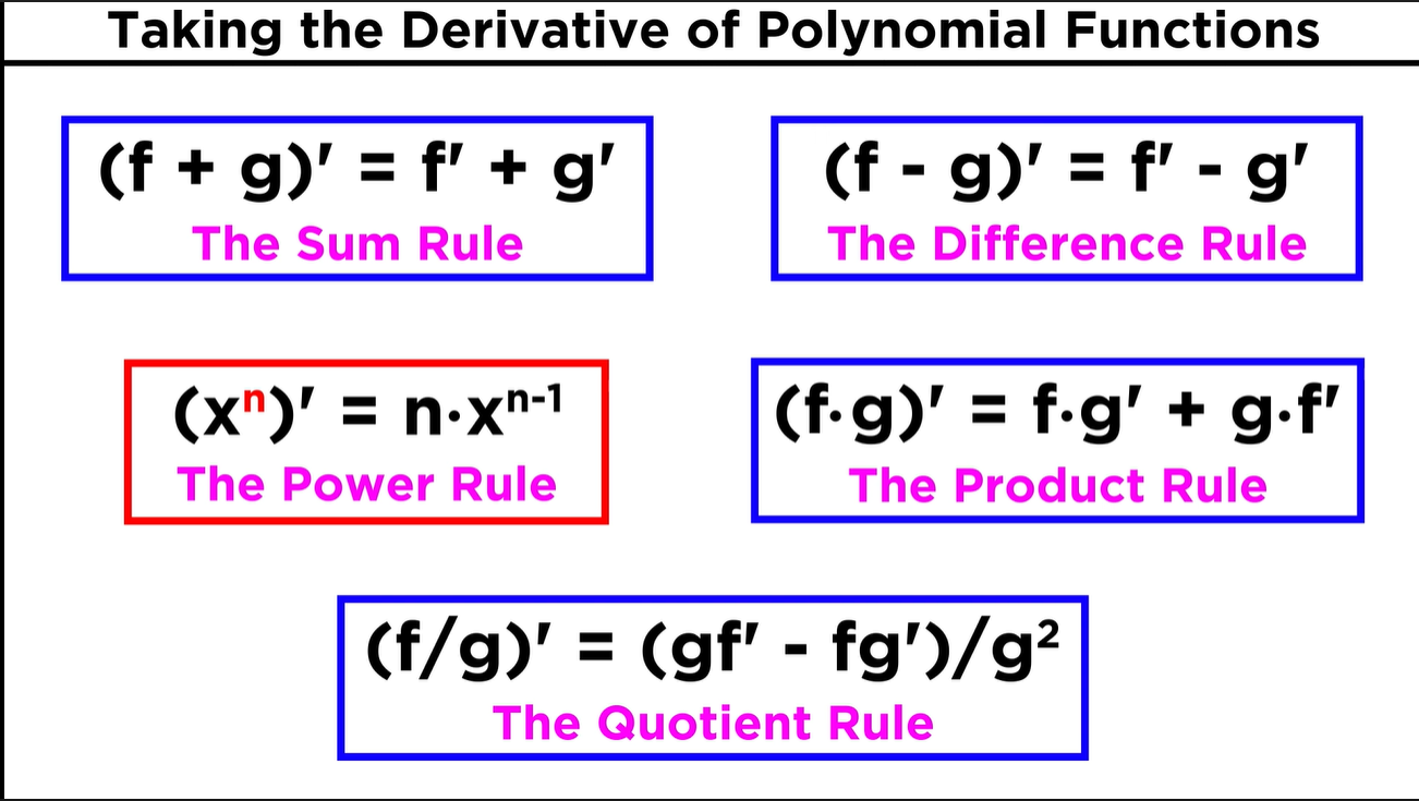 Rules, sum rule, difference rule, power rule, product rule, quotient rule, chain rule