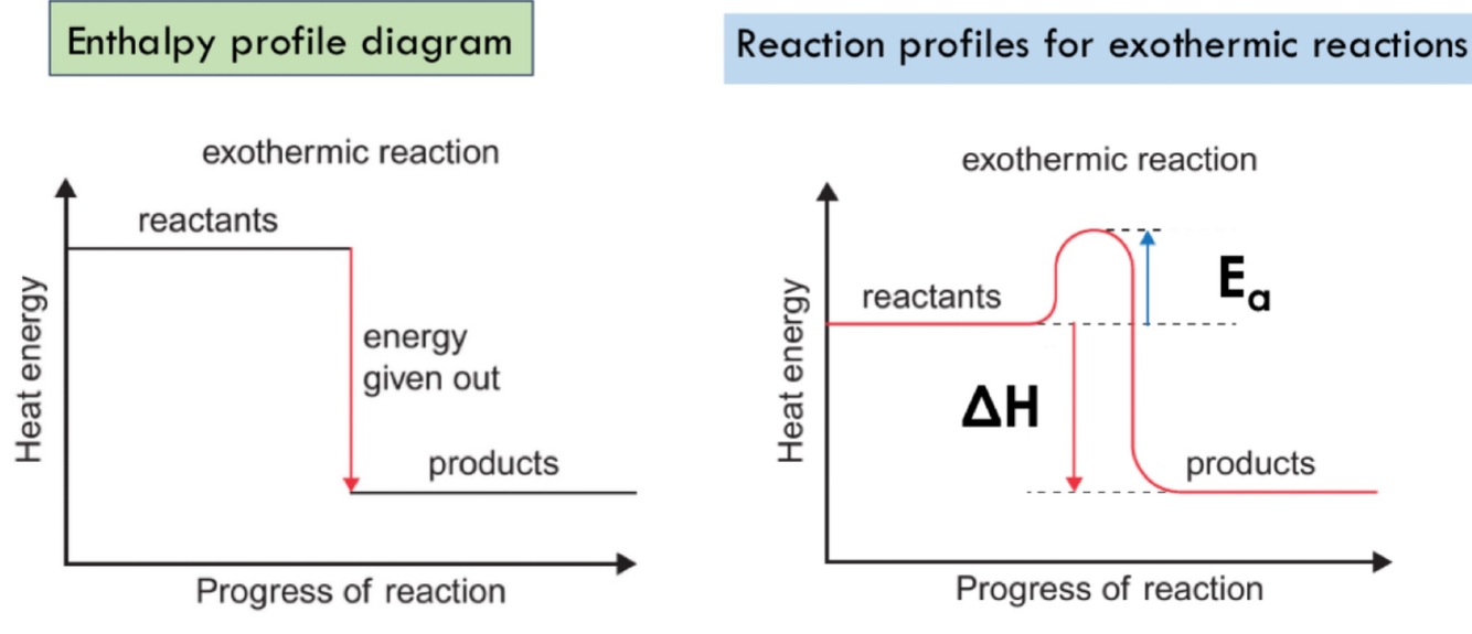 What does the enthalpy and reaction profile looks like for an exothermic ?