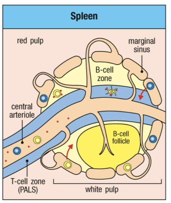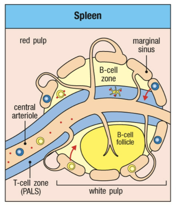 The spleen will receive the antigen via arterioles which branch from central arteriole to the _________ _______
