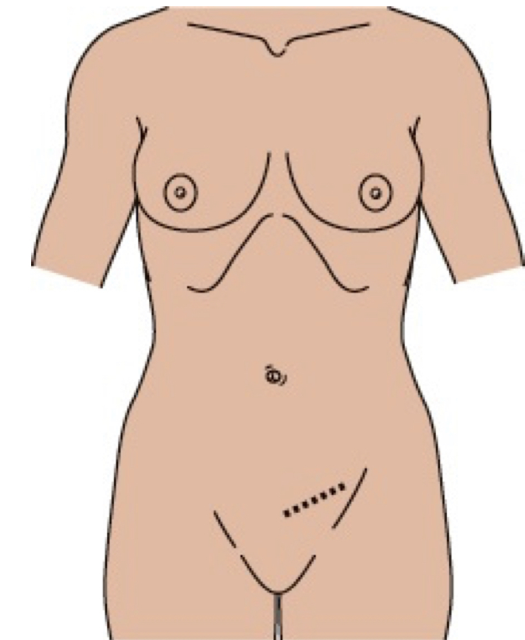 Low transverse abdominal incision with retraction of the rectus muscles laterally; most often used for gynecologic procedures: