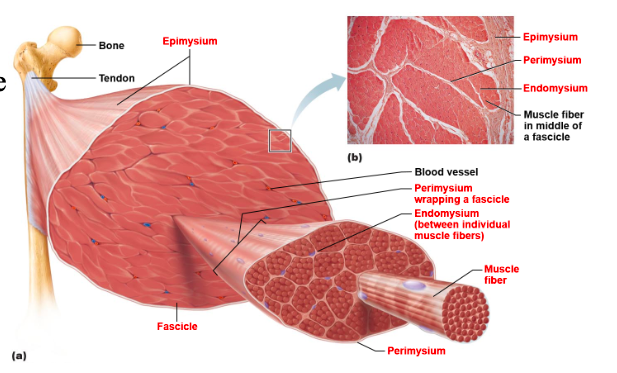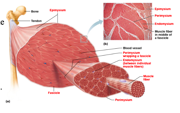 Fibrous connective tissue surrounding fascicles (group of muscle fibers)