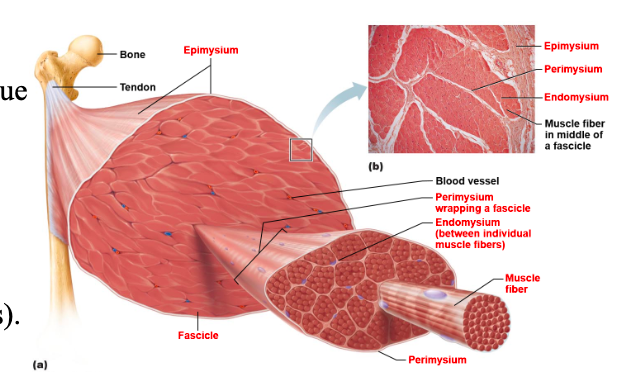 The connective tissue wrappings extend beyond muscle as ropelike tendon or sheet like aponeurosis (on front of skull)
