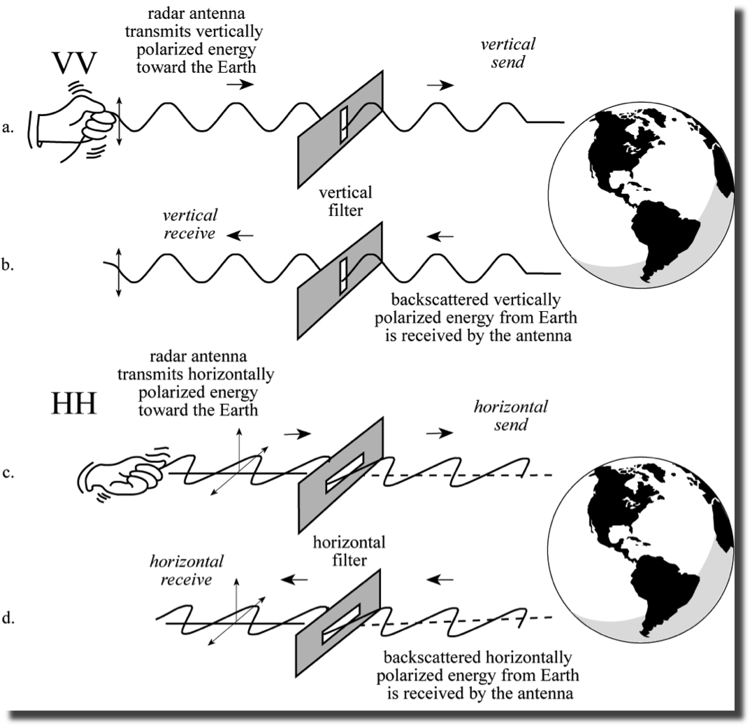 pulse of energy is filtered so that its electrical wave vibrations are only in a single plane that is perpendicular to the direction of travel. the pulse can be sent out vertically or horizonally