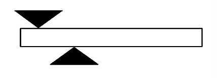 of gravity acting at the CM of the beam and the downward force of