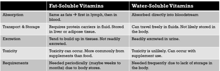 Fat-soluble vs water-soluble vitamins: