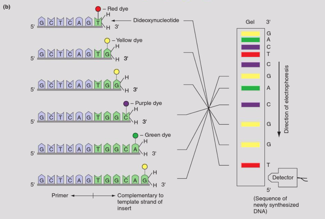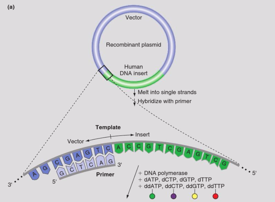 o Sanger sequencing allows the template and primer to interact through the process for hybridization: that natural tendency of complementary single-stranded molecules of DNA or RNA to base pair and form double helixes