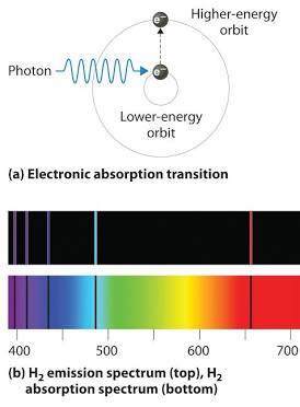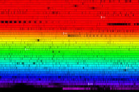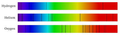 A distinctive combination of colours produced by an element when heated or electrically excited.