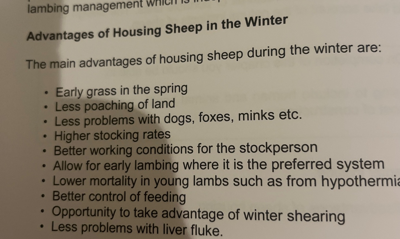 Housing sheep over the wintertime has numerous benefits. Outline 5 main advantages of housing sheep for the winter period.