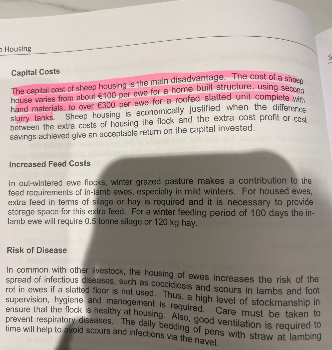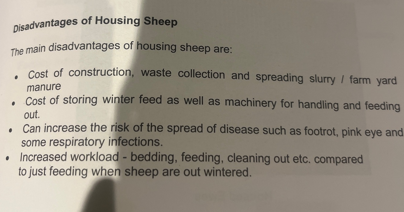 Give 3 disadvantages of housing sheep for the winter