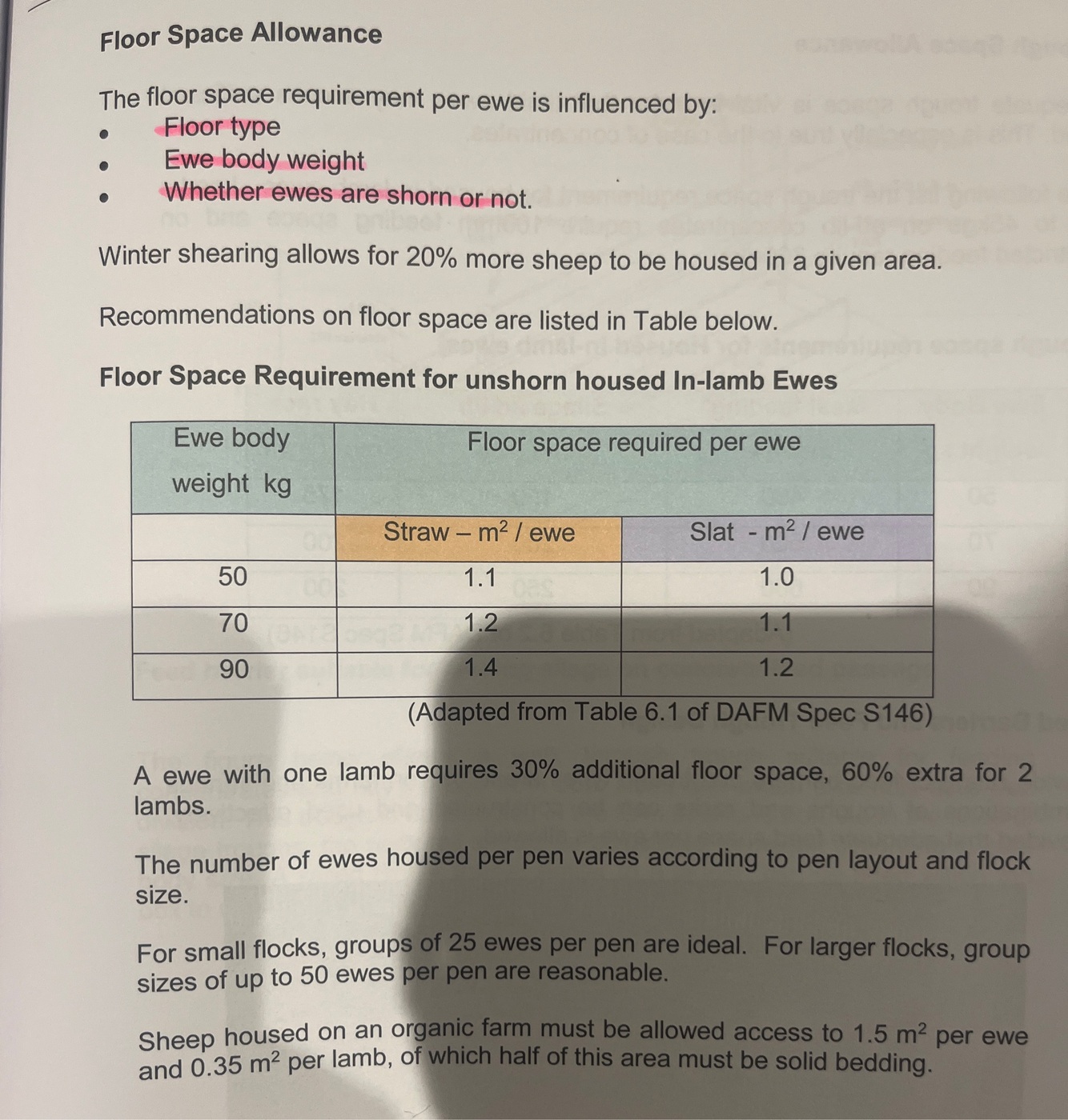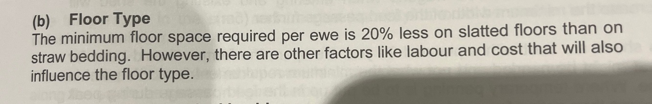 True or False. When housing sheep floor space requirements are greater on slats versus straw.