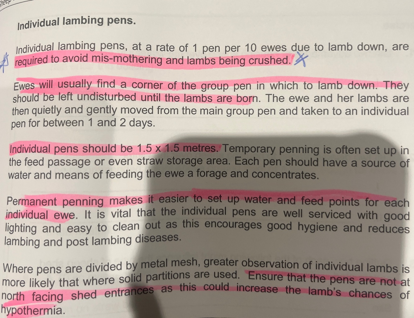 Give 2 reasons why individual lambing pens important during lambing.