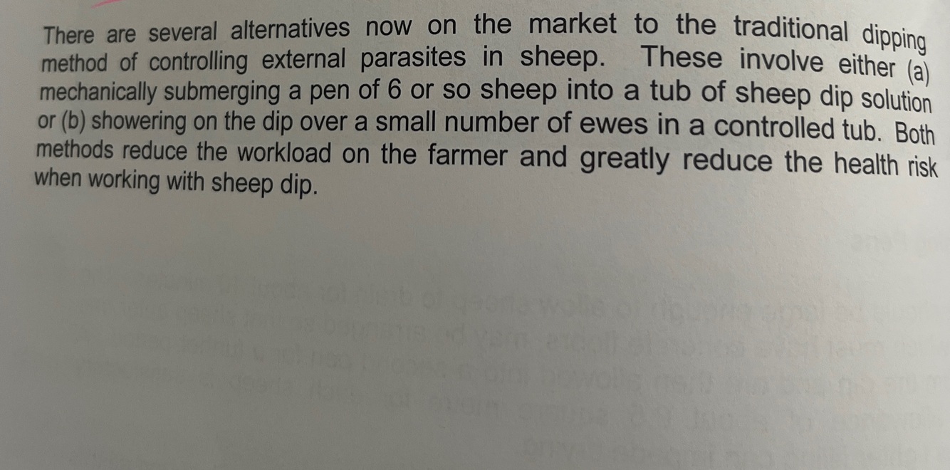 Pour ons and foot baths/ clipping of wool.