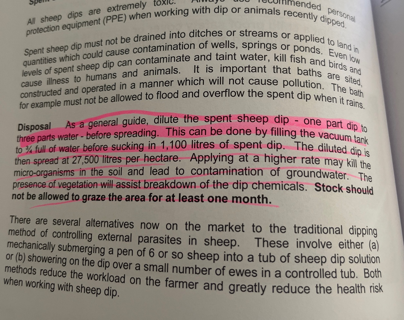 How can you dispose of spent sheep dips?