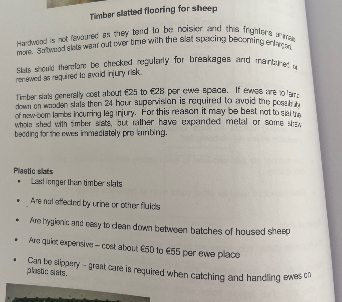 List 4 types of slatted flooring suitable for sheep housing.