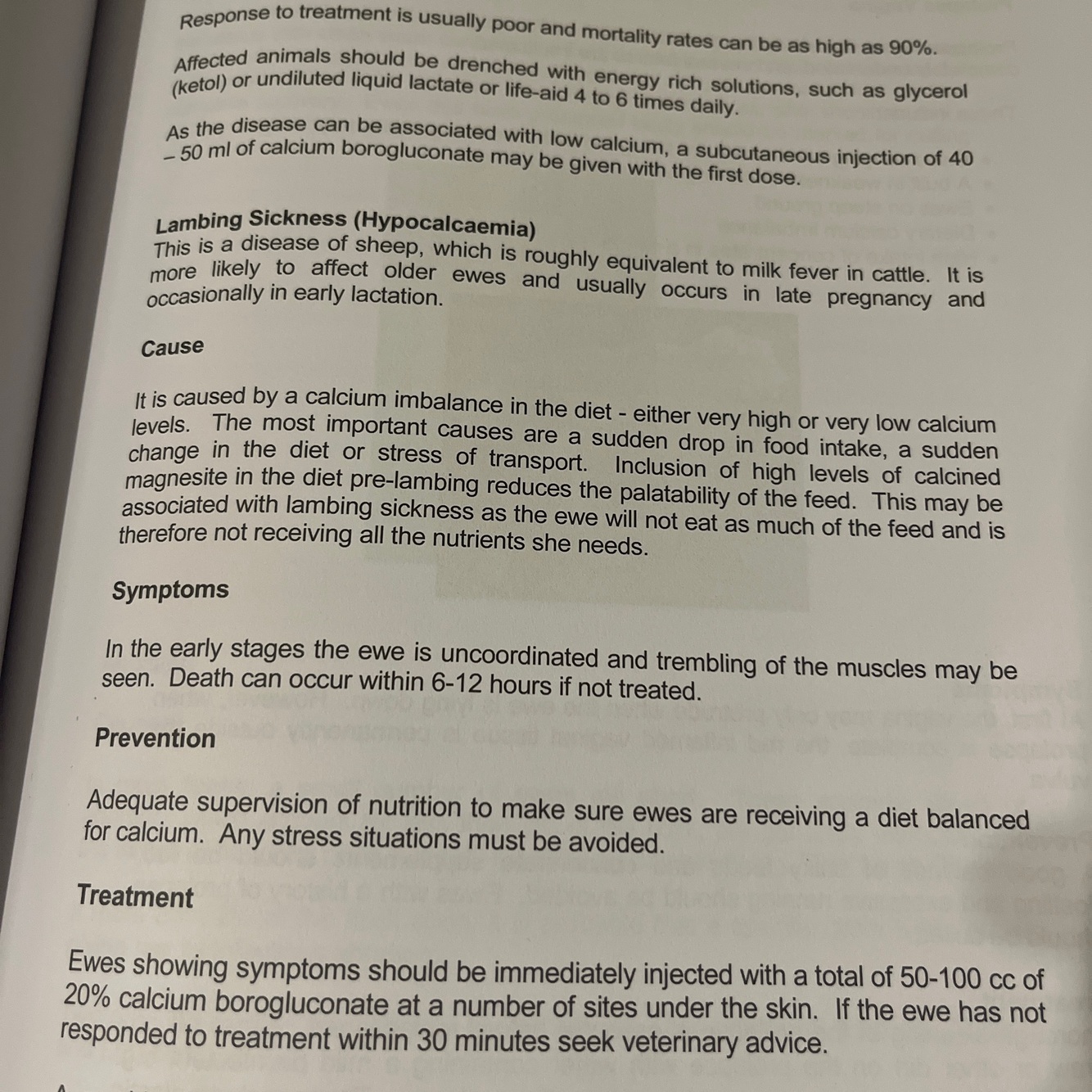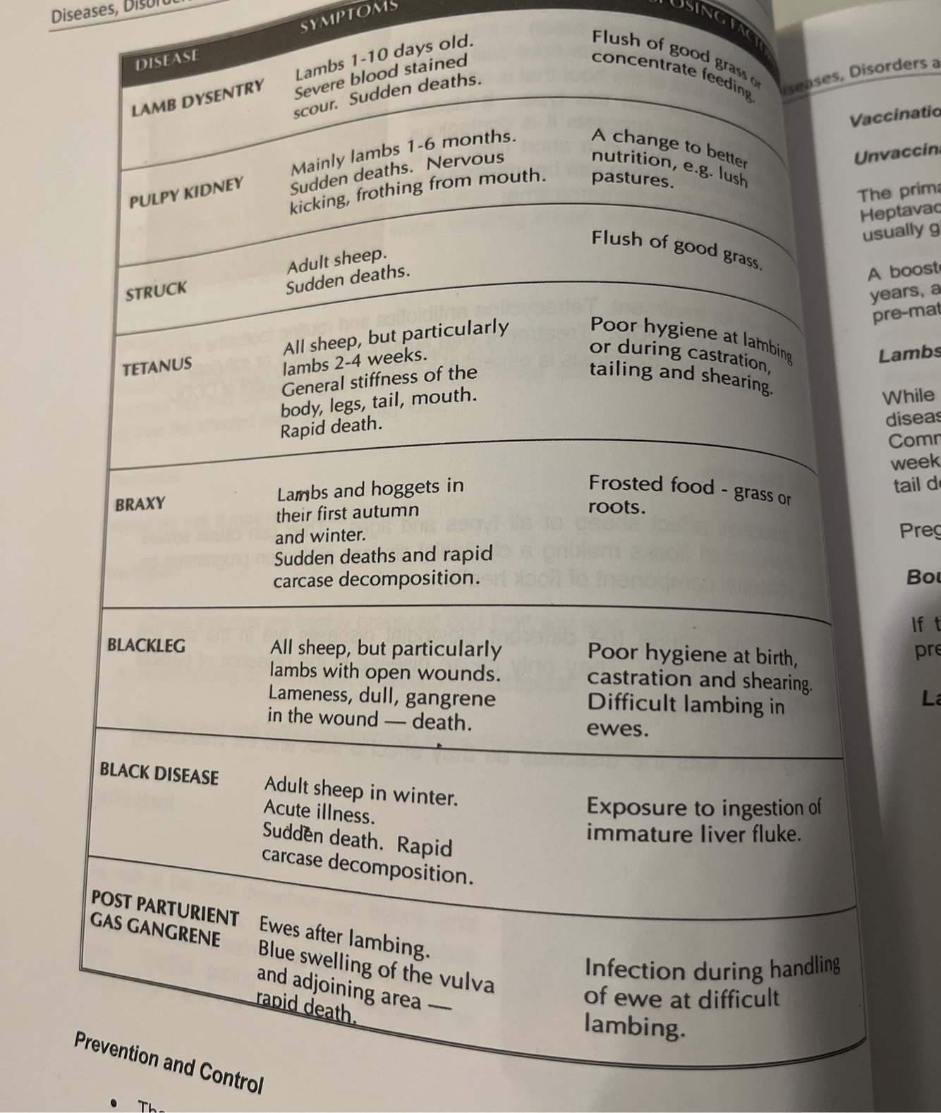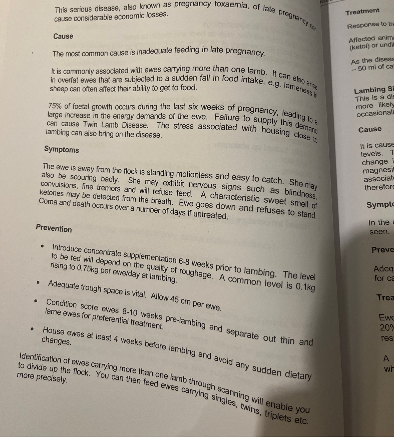 Choose one common disease of ewes and lambs at lambing time and be able to answer the following: