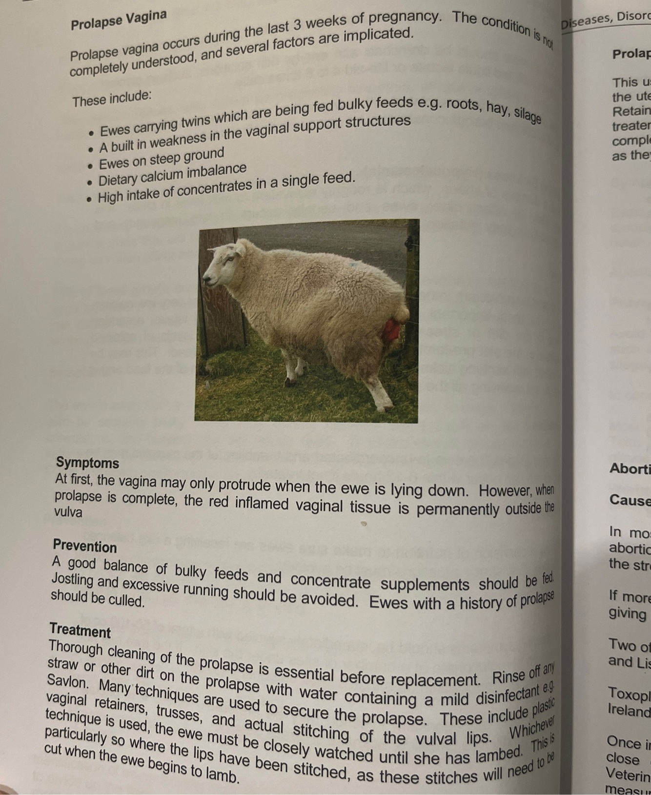 A prolapsed uterus (putting out the lamb bed) usually occurs after lambing, particularly difficult lambings.