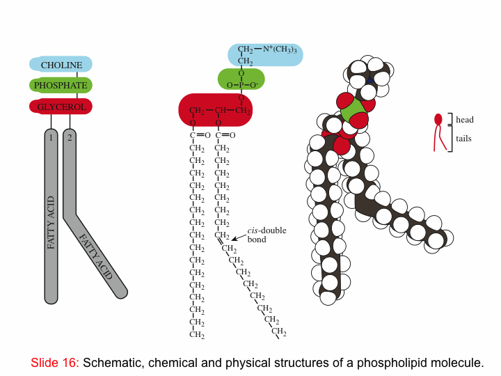 The formation of membranes. These membranes are composed of phospholipids. Unlike triacylglycerols, the third site is instead attached to a hydrophilic phosphate group. Phospholipids are amphipathic. Triacylglycerols are predominantly hydrophobic.