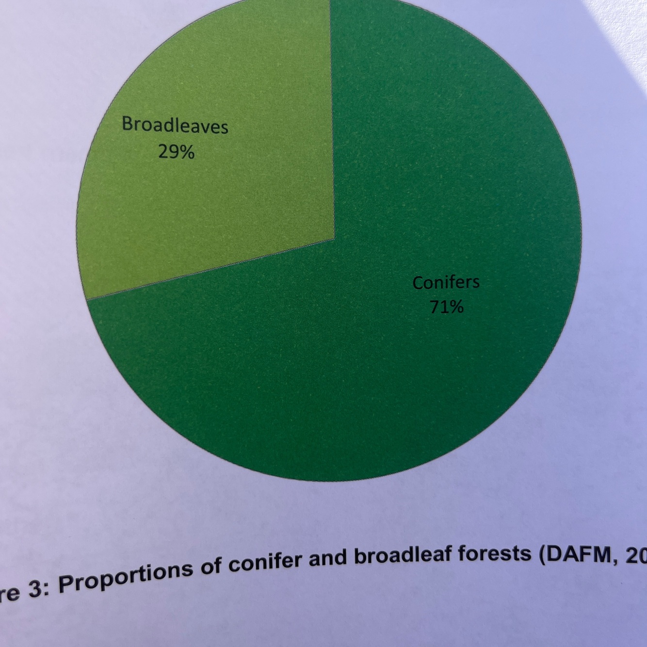 What is the proportion of conifer and broadleaf forests?