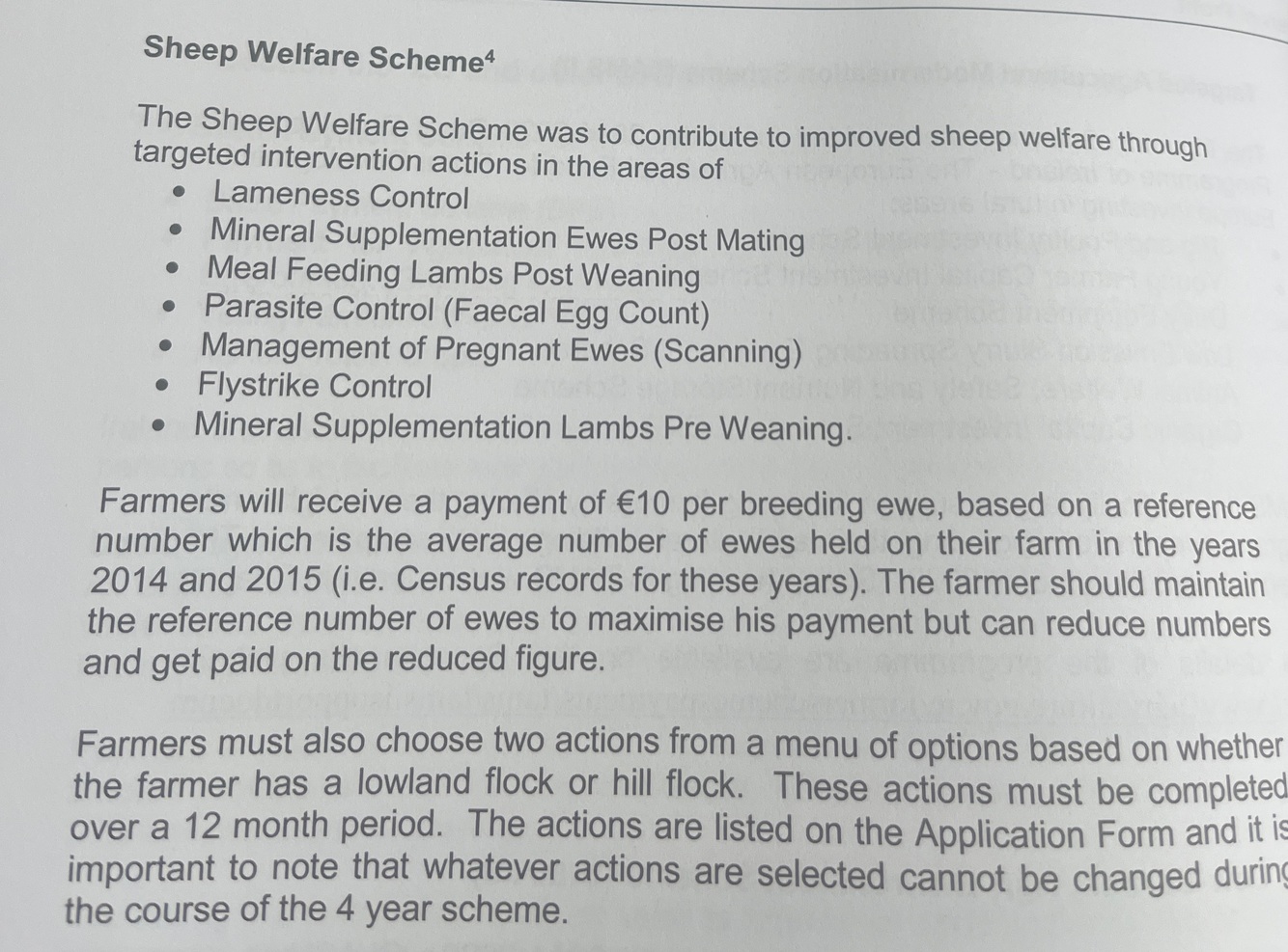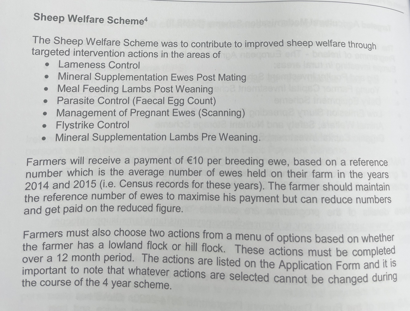 The Sheep Welfare Scheme has led to improved sheep welfare through targeted intervention actions in many areas. List 4 of these areas.