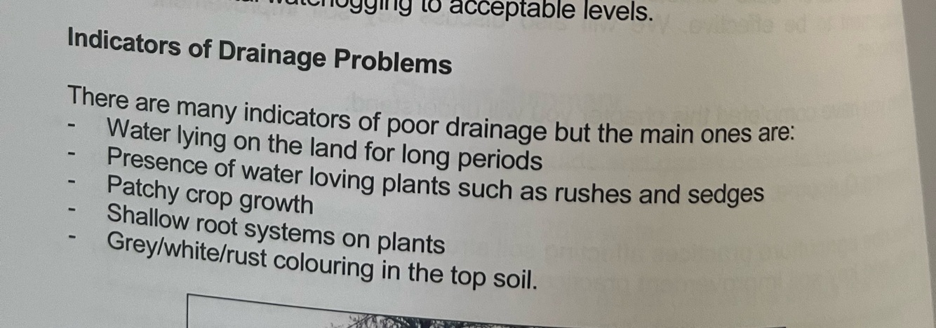 What are indications of drainage problems?
