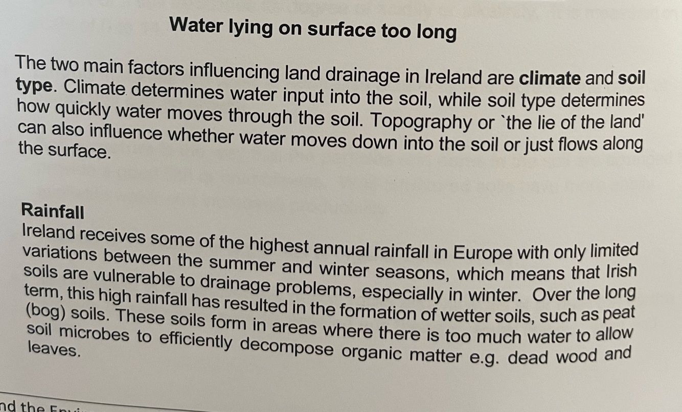 List the TWO main factors influencing land drainage in Ireland?