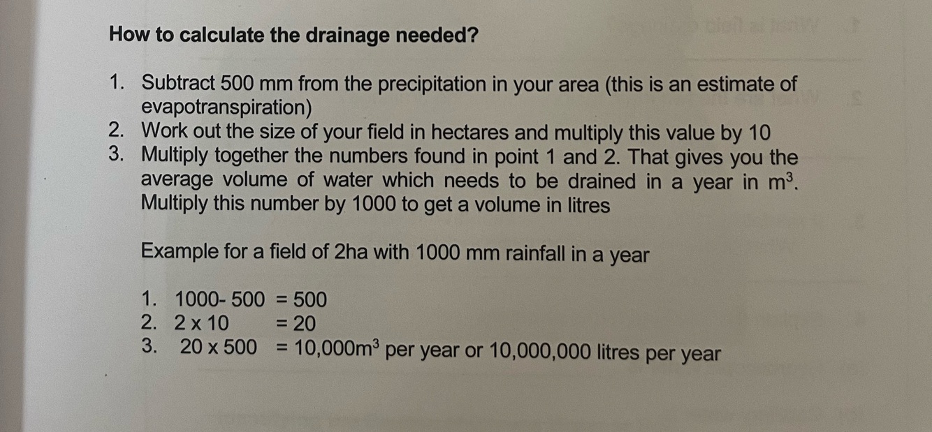 How to calculate the drainage needed?
